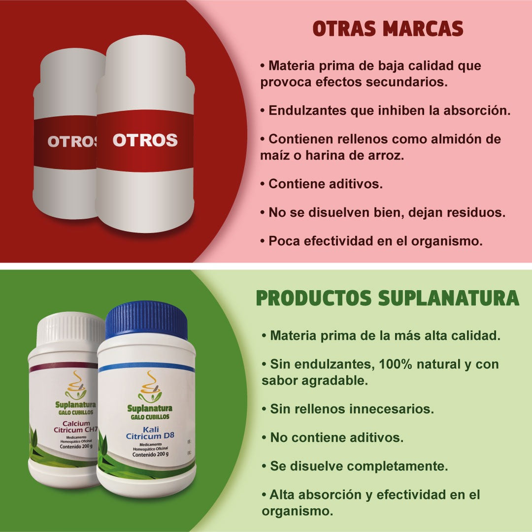 Nuestro Citrato de Magnesio está hecho con materias primas de la más alta calidad, 100% natural, sin aditivos ni rellenos, ofreciendo un contenido neto mayor en comparación con los productos típicos del mercado.